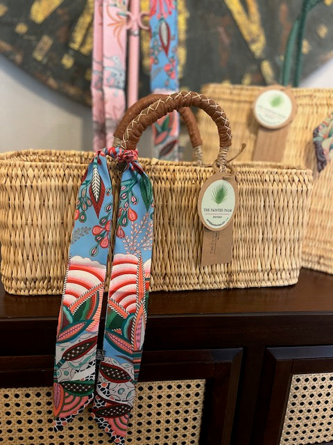 This playful mini scarf is a chic little twist to your outfit, measuring 34" long and a slender 2" wide. Perfect for tying around your neck, wrist, or handbag, it adds just the right pop of style wherever you choose to wear it. Light, versatile, and effortlessly fun!