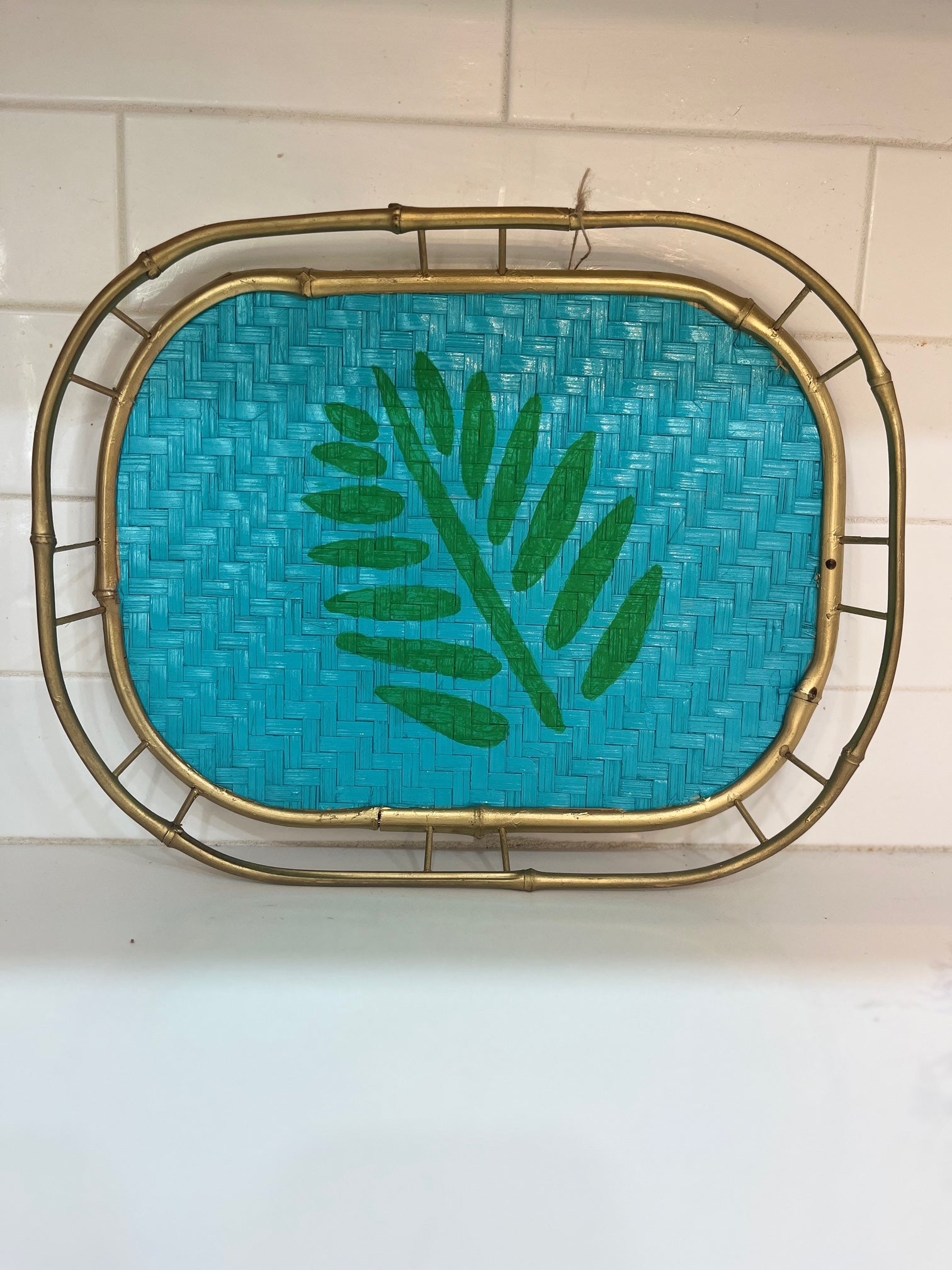 This Small Coastal Bamboo serving tray features a vintage woven design. Size-small. Approximate dimensions: 13L x10W